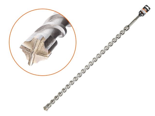 Тип и назначение: бур (сверло) для сверления отверстий в бетоне, армированном бетоне, кирпичной кладке, природном и искусственном камне. Оснащен твердосплавным карбид-вольфрамовым наконечником с четырьмя режущими кромками. Центрирующий наконечник обеспечивает точное засверливание. Корпус бура выполнен из закаленной конструкционной легированной стали и термообработан. Канавка U-образной формы способствует эффективному отводу шлама. Подходит для интенсивных нагрузок,