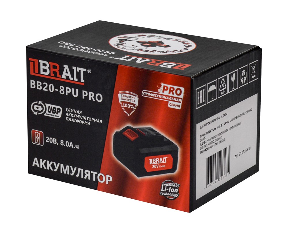 Аккумулятор BB20-8PU PRO (20В, 8.0 А.ч.Единая платформа PU и PUBL) 20шт/кор