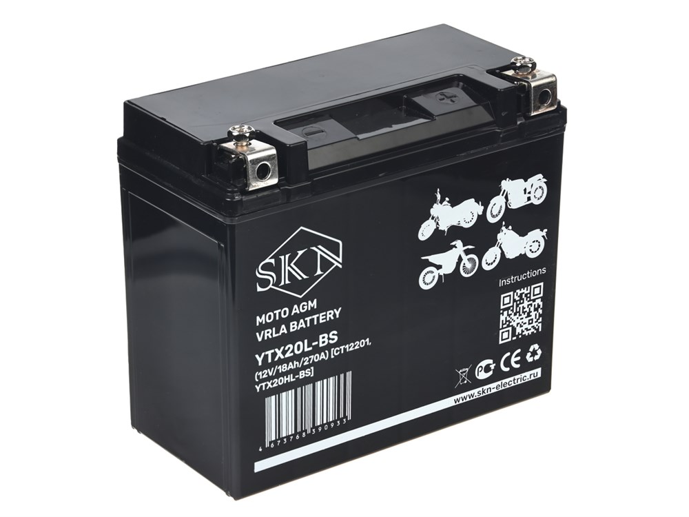 Аккумулятор стартерный для мототехники SKN YTX20L-BS (12V/18Ah/270A) [CT 12201, YTX20HL-BS]