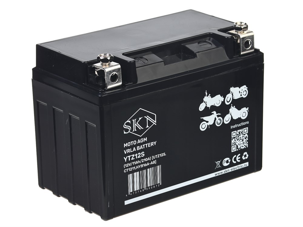 Аккумулятор стартерный для мототехники SKN YTZ12S (12V/11Ah/210A) [UTZ12S, CT 1211, HYB16A-AB]