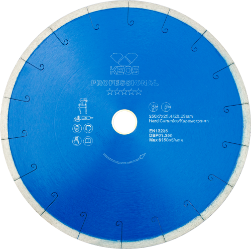 Диск алмазный KEOS Professional 250мм/25,4/22,23/ сплошной (керамогранит) (DBP01.250)
