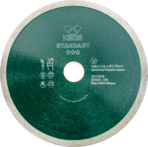 Диск алмазный KEOS Standart сплошной (керамогранит) 180мм/25,4/22,23 (DBS01.180)
