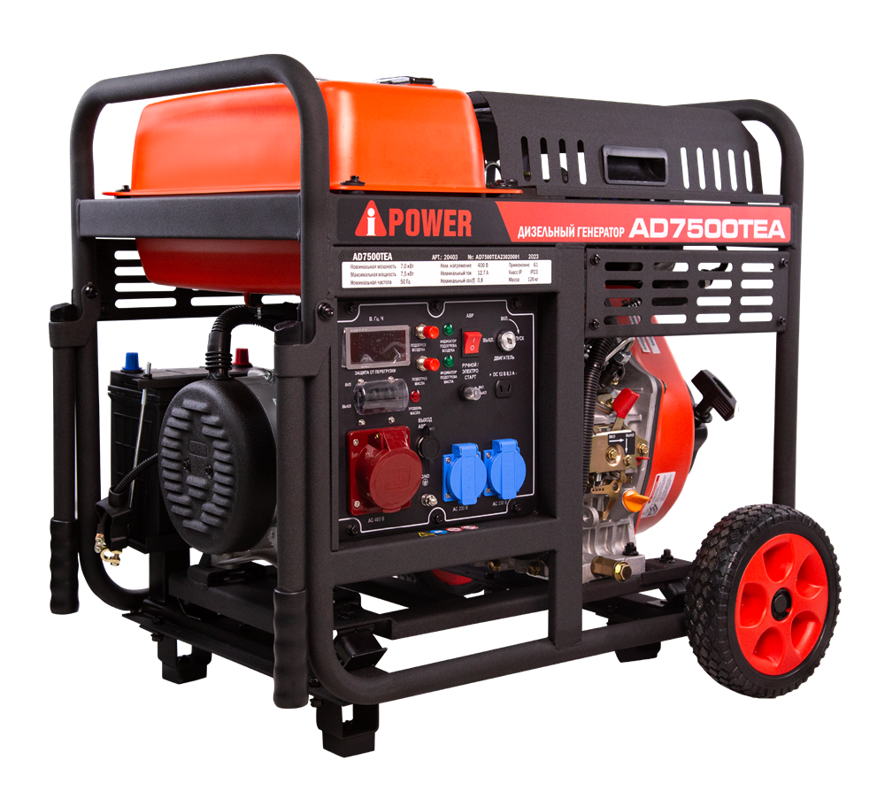 Дизельный генератор AD7500TEA – трехфазная электростанция номинальной мощностью 7 кВт с дизельным двигателем воздушного охлаждения. Отлично подходит для мобильного электроснабжения загородных домов