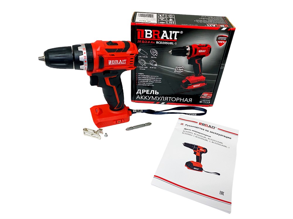 Дрель аккум-ая BCD20SUBL-1 (АКБ ШУРУП-ТА BCD20SU-4.0 И У/З ШУР-ТА BCD20S-3.0A, 20В,Li-on,короб,2ск,38Н-м,бесщет.двиг.,индикат. зар;быстроз.патрон10мм)