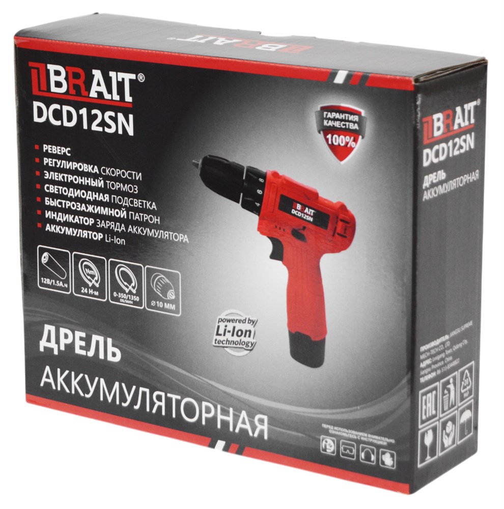 Дрель аккумуляторная DCD12SN (12В, АКБ (Li-on) 1,5Ач; индикатор заряда,быстрозажимной патрон,2скор,24Нм,з/у 0.8А) 20шт/уп, 640шт/под