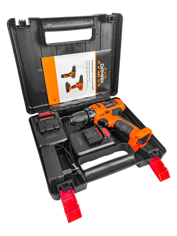 Оформление под заказ - Дрель аккумуляторная DCD21-2 DAMAN (21В,Li-on,2 АКБ,зарядка,кейс,2Ач,2ск,48 Н-м,индикатор заряда,быстрозажим. патрон)10шт/кор 200/240шт/подд