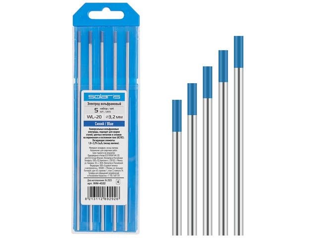 Электрод вольфрамовый синий WL-20, Ф 3,2 мм (набор 5 шт) SOLARIS