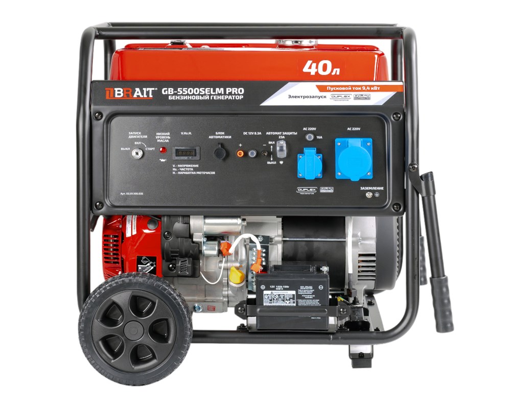 Генератор бензиновый GB-5500SELM PRO (5,0/5,5кВт;220В/50Гц;электрозап;выход под блок ATS,ф-я DUPLEX(пуск.ток)9,4кВт;2розетки;дисплей,бак 40л) 4шт/подд