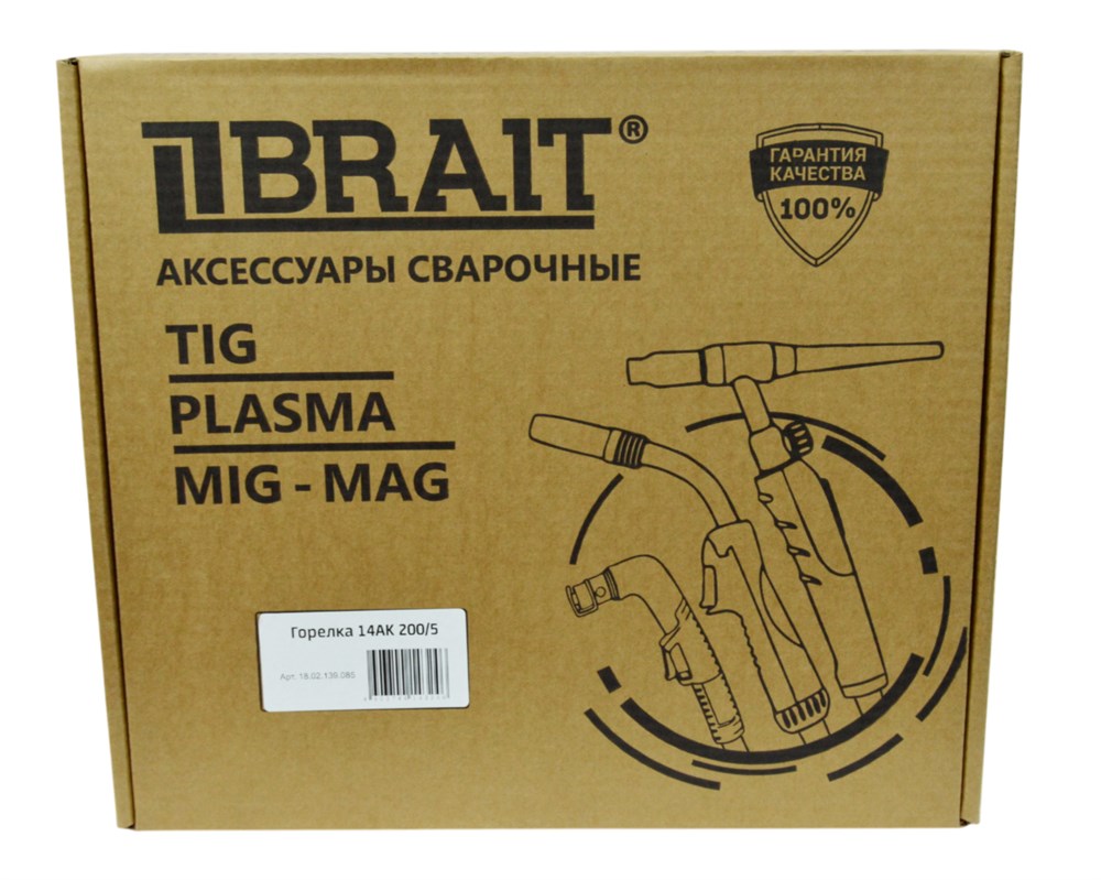 Горелка 14AK 200/5 (подходит на MIG200E, 200А, 5 метров кабель ) 5шт/короб