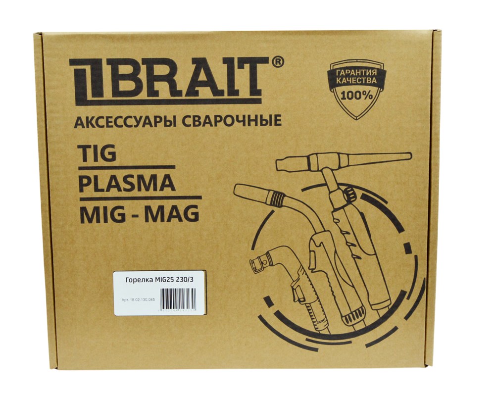 Оформление под заказ - Горелка MIG25 230/3 (воздушное охлаждение, 230А, вилка EURO, 3 метра кабель) 5шт/короб