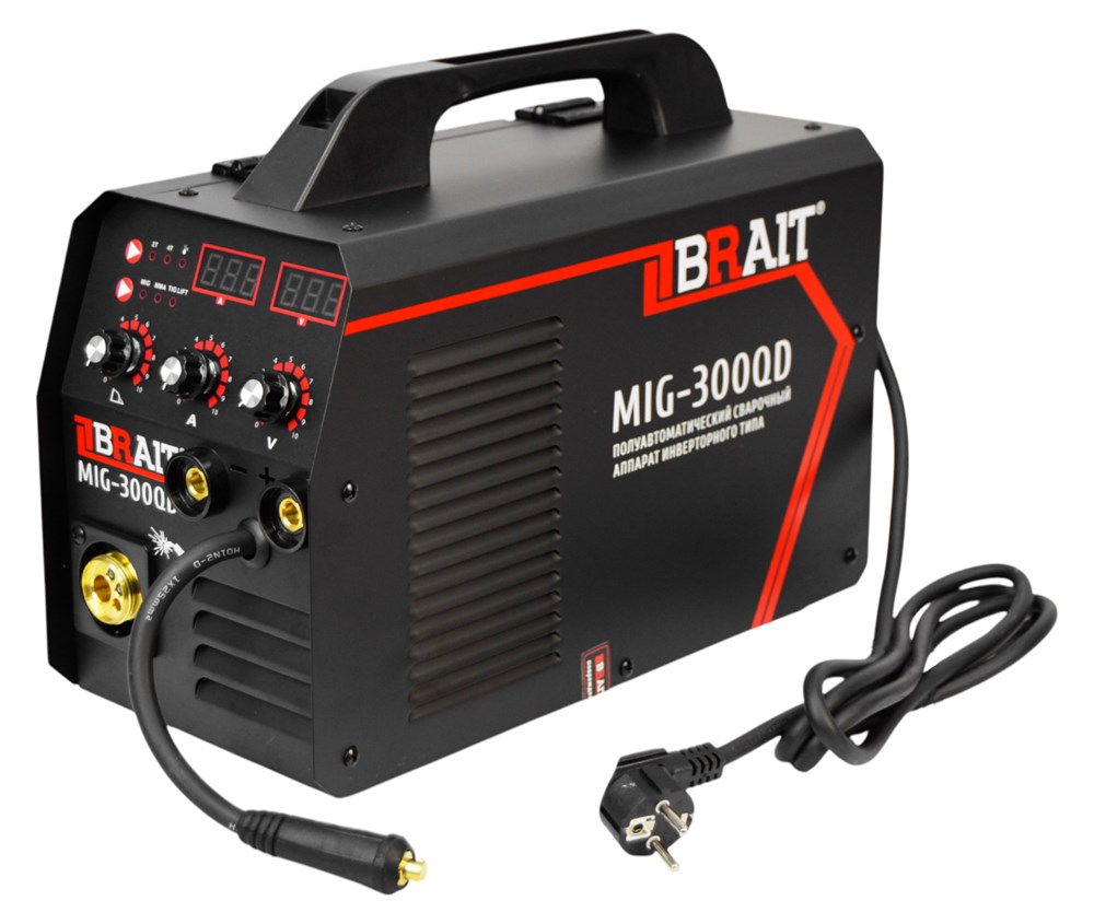 Инвертор сварочный полуавтомат MIG-300QD (30-190А(В ПОДАРОК ПРОВОЛОКА ПОРОШК. BRAIT E71TGS 0,8х1КГ) d.провол.0,6-1мм;до 5кг;свароч.горелка съем.)