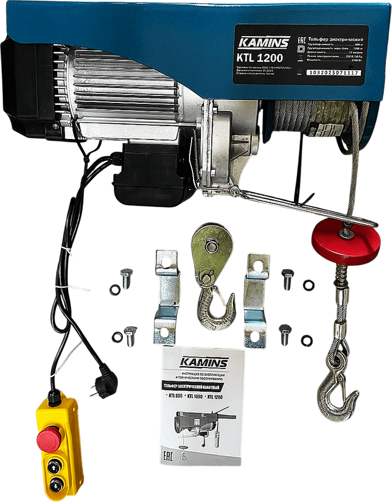 Тельфер Kamins KTL 1200 это надёжный и удобный инструмент для различных грузоподъемных работ, который прослужит вам долгие годы. Тельфер станет незаменимым помощником в вашей работе и позволит значительно повысить её эффективность.