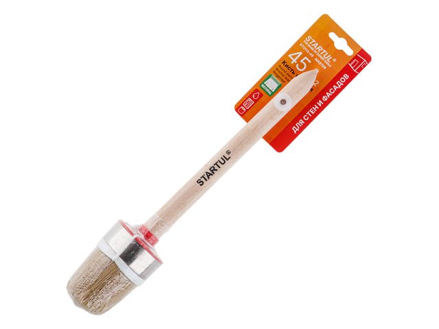 Тип и назначение: кисть круглая для окрашивания окон, плинтусов, наличников, дверей, ровных и профильных основ, подклейки обоев,