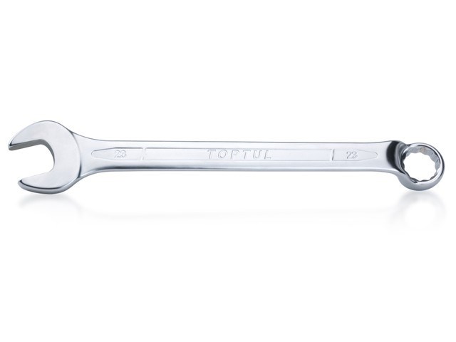 Ключ комбинированный TOPTUL имеет окончание в виде рожкового ключа размером 13мм с одной стороны и окончание в виде накидного ключа размером 13мм с другой стороны. Рожковый ключ имеет смещение 15 по отношению к рукоятке, а накидной - 75. Рекомендуется для профессионального использования.
