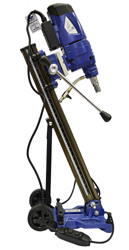 Штатив обладает быстрой и лёгкой сменой угла наклона, что даёт вам гибкость в работе. Две скорости редуктора каретки позволяют выбрать оптимальную скорость подачи мотора, а ролики на каретке обеспечивают точное и плавное перемещение для аккуратного бурения. Мотор крепится к штативу с помощью быстросъёмной пластины, что упрощает сборку и разборку.