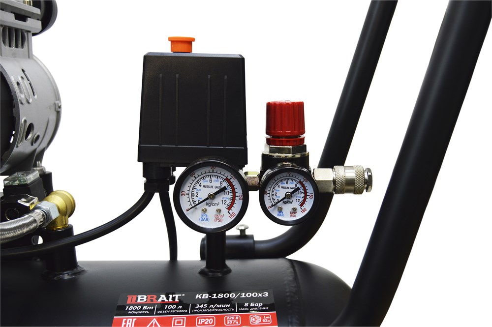 Компрессор воздушный KB-1800/100X3 (220В,1800Вт;345л/м;8bar;рес. 100л) 4шт/палл