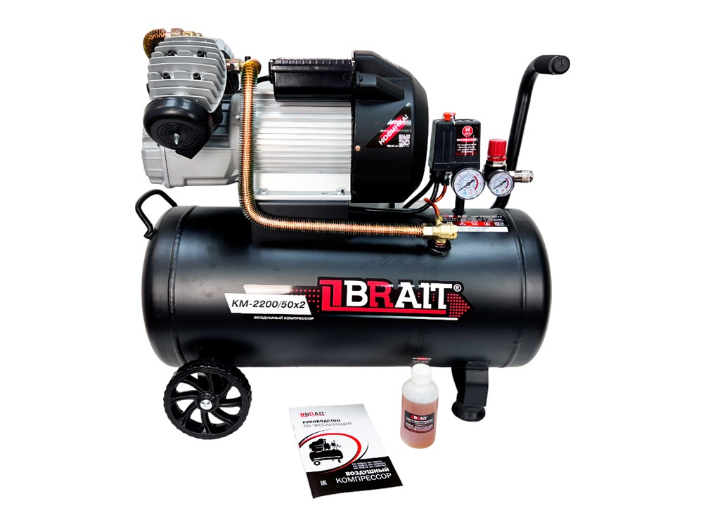 Компрессор воздушный KM-2200/50Х2 (2,2кВт; 360л/мин; ресивер 50л; 2 цилиндра, коаксиальный) 8шт/поддон