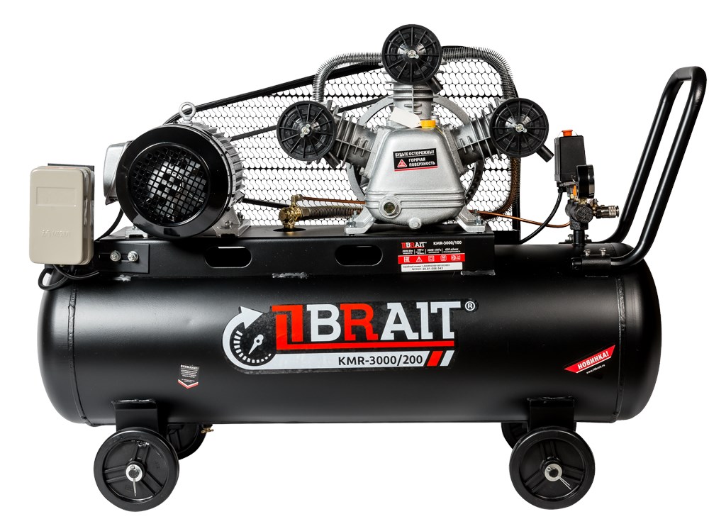 Компрессор воздушный KMR-3000/200 (3-х цил;ременной, d поршня 65мм;380В,3кВт;650л/м;8bar;рес. 200л) 4шт/поддон
