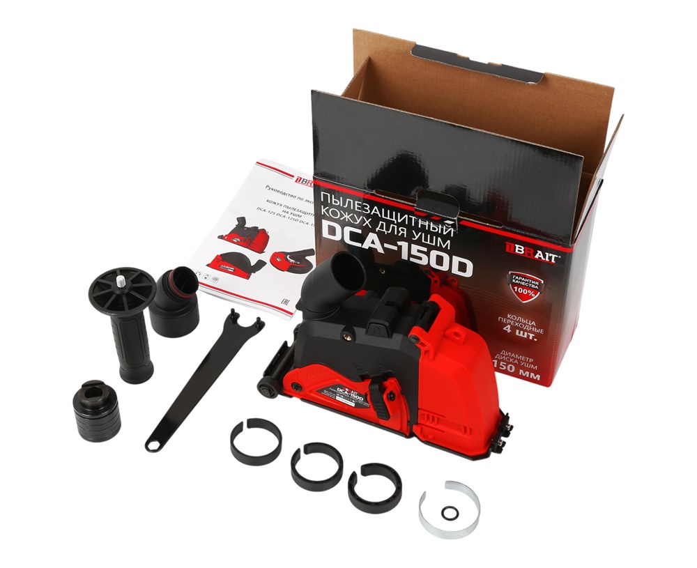 Кожух пылезащитный для УШМ DCA-150D(для штробления)(диам. диска УШМ150мм;посад.диам.шейки50мм;диам.патр.пылес.внутр/внеш.45/50мм)12шт/уп, 240шт/поддон