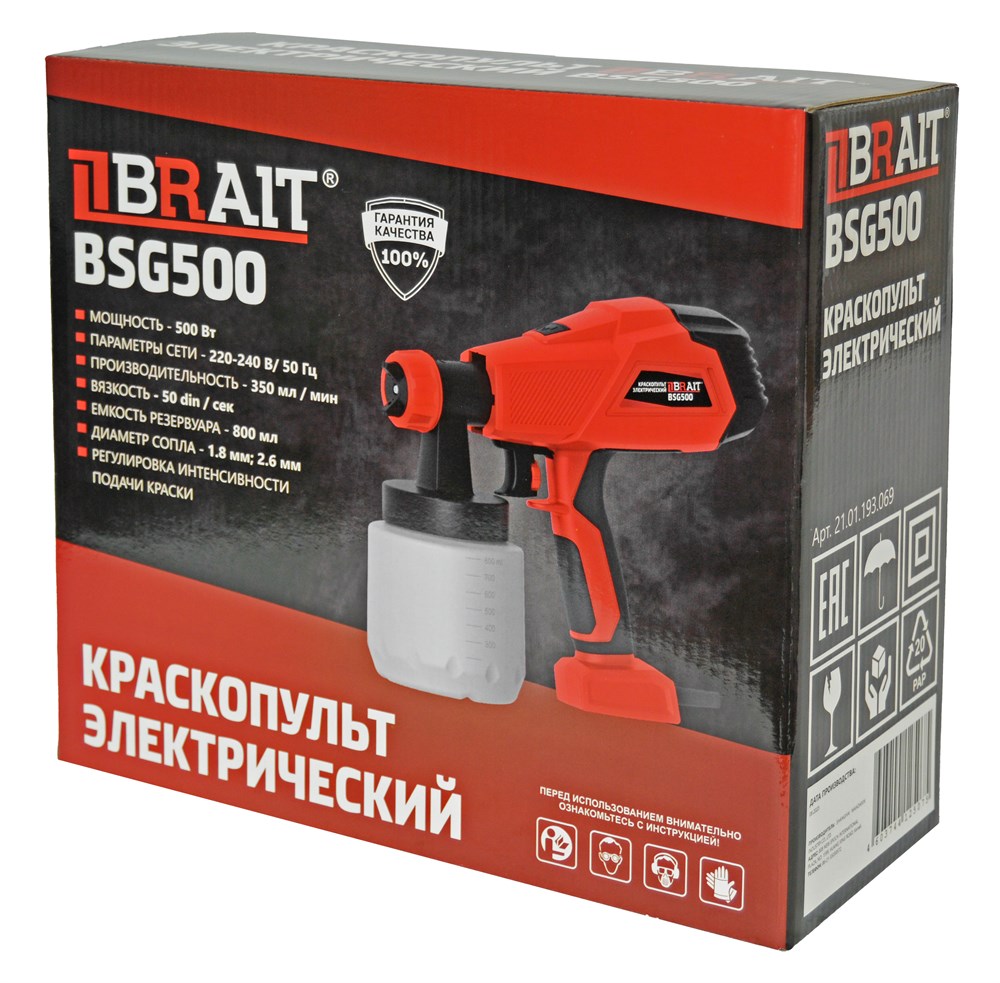 Краскопульт электрический BSG-500 (500Вт,бачок 800мл,максимальная подача 350мл/мин,регулировка интенсивности распыления) 4шт/уп 120шт/144шт/подд
