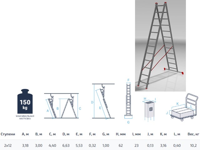 Высота лестницы - 553см, высота стремянки - 300см.