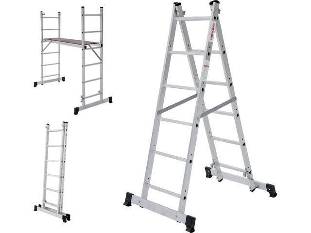Легкая и прочная лестница-подмости 3 в 1: приставная лестница, стремянка, строительные подмости.