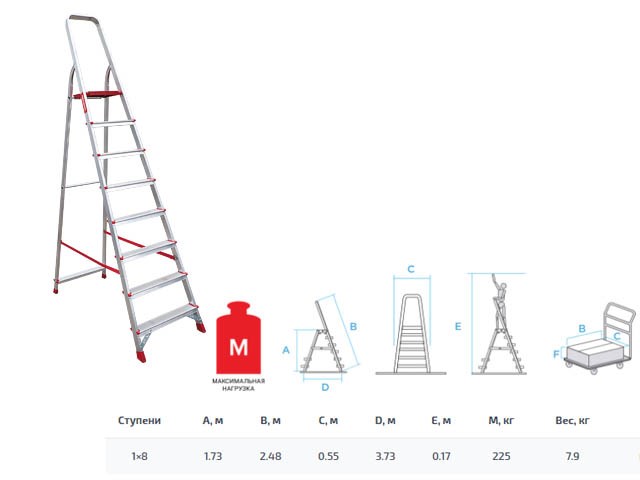 Лестница-стремянка алюм. проф. 169 см 8 ступ. 6,4 кг NV3110 Новая Высота