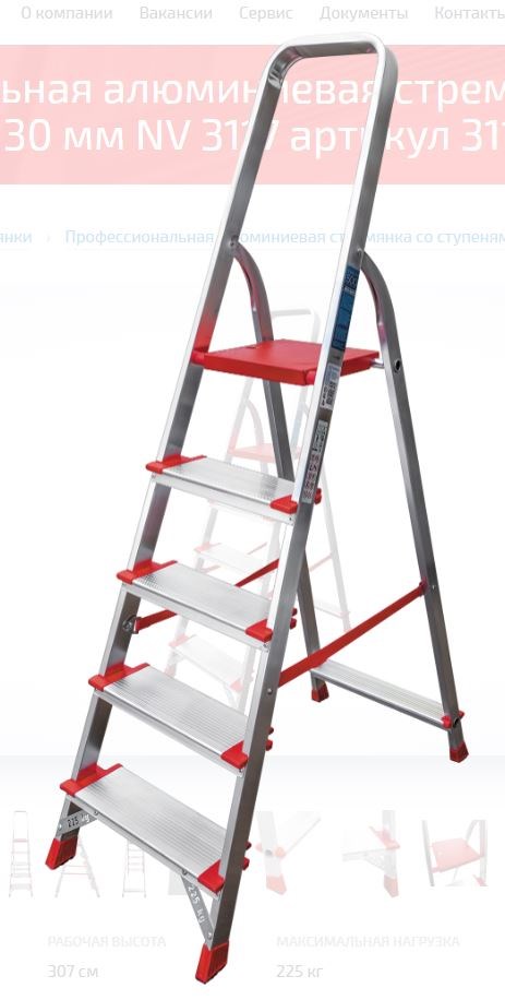 - прочное крепление ступеней к боковинам заклёпками придаёт конструкции высокую устойчивость,