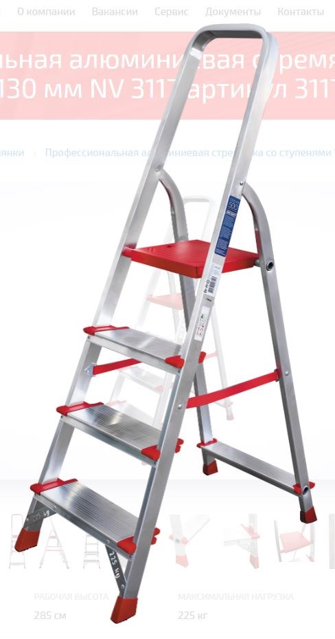 - прочное крепление ступеней к боковинам заклёпками придаёт конструкции высокую устойчивость,
