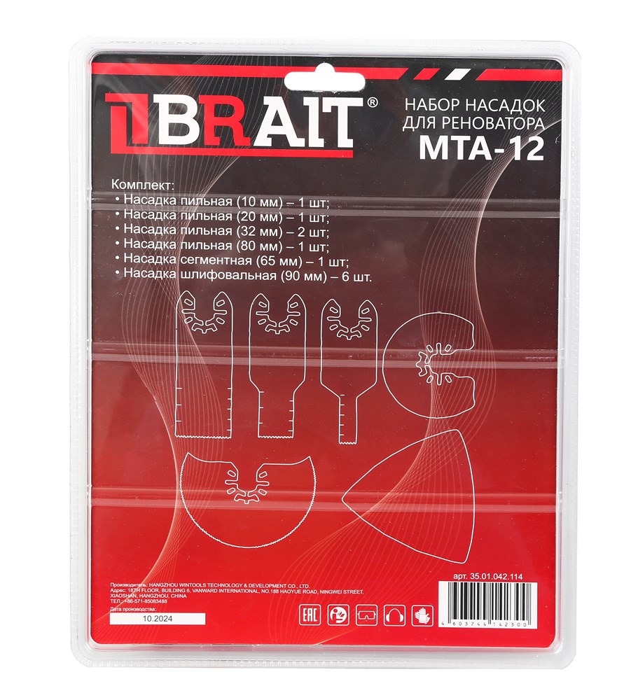 Набор насадок для реноватора MTA-12(насадка пильная 88мм по металлу,дереву,пластику;сегментная,шлифовальная насадка)20шт/уп, 600шт/поддон