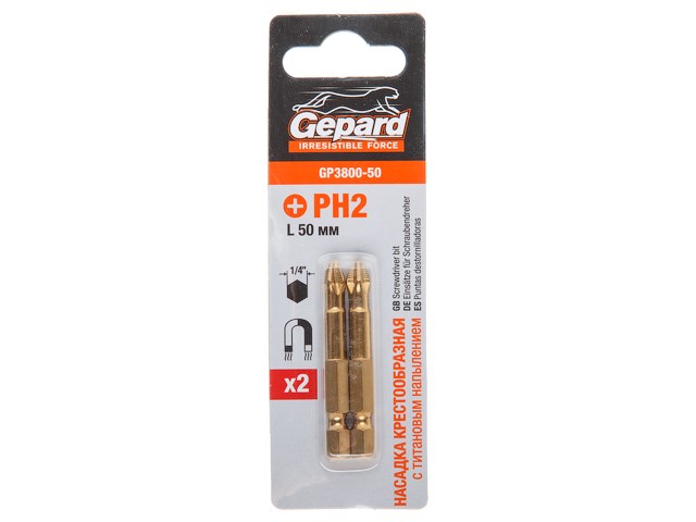 Насадка крестообразная PH2 50мм 2шт с титановым напылением GEPARD (GP3800-50)