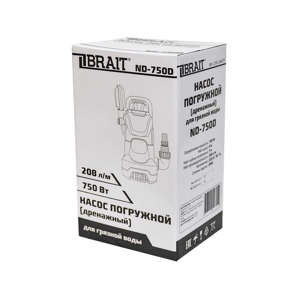 Насос дренажный погружной ND-750D (208л/м; 750Вт;до 35 мм; макс. напор 8м; для грязной воды, пластик) 4шт/кор 80шт/подд
