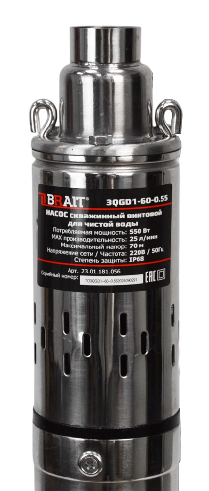 Насос скважинный 3QGD1-60-0.55 (550Вт, макс. произв. 25л/мин, кабель 20м, макс.напор. 70м) 80шт/палл