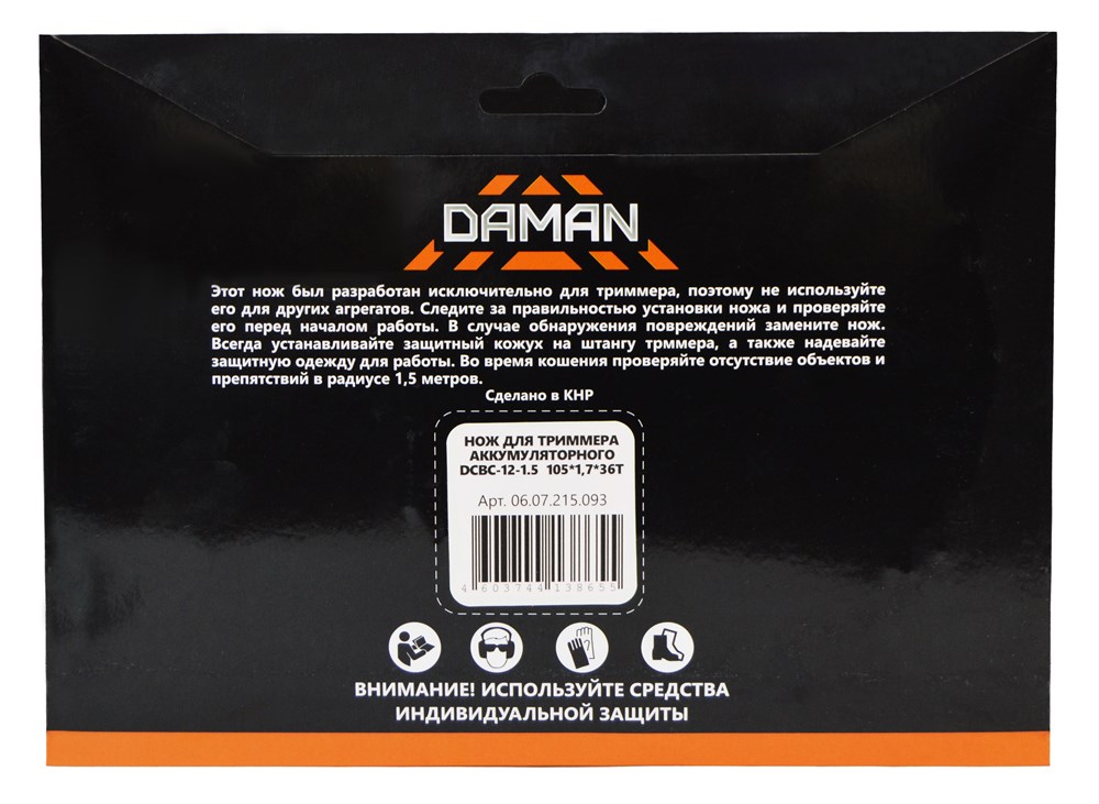 Нож для триммера аккумуляторного DCBC-12-1.5 105*1,7*36Т DAMAN 200шт/кор