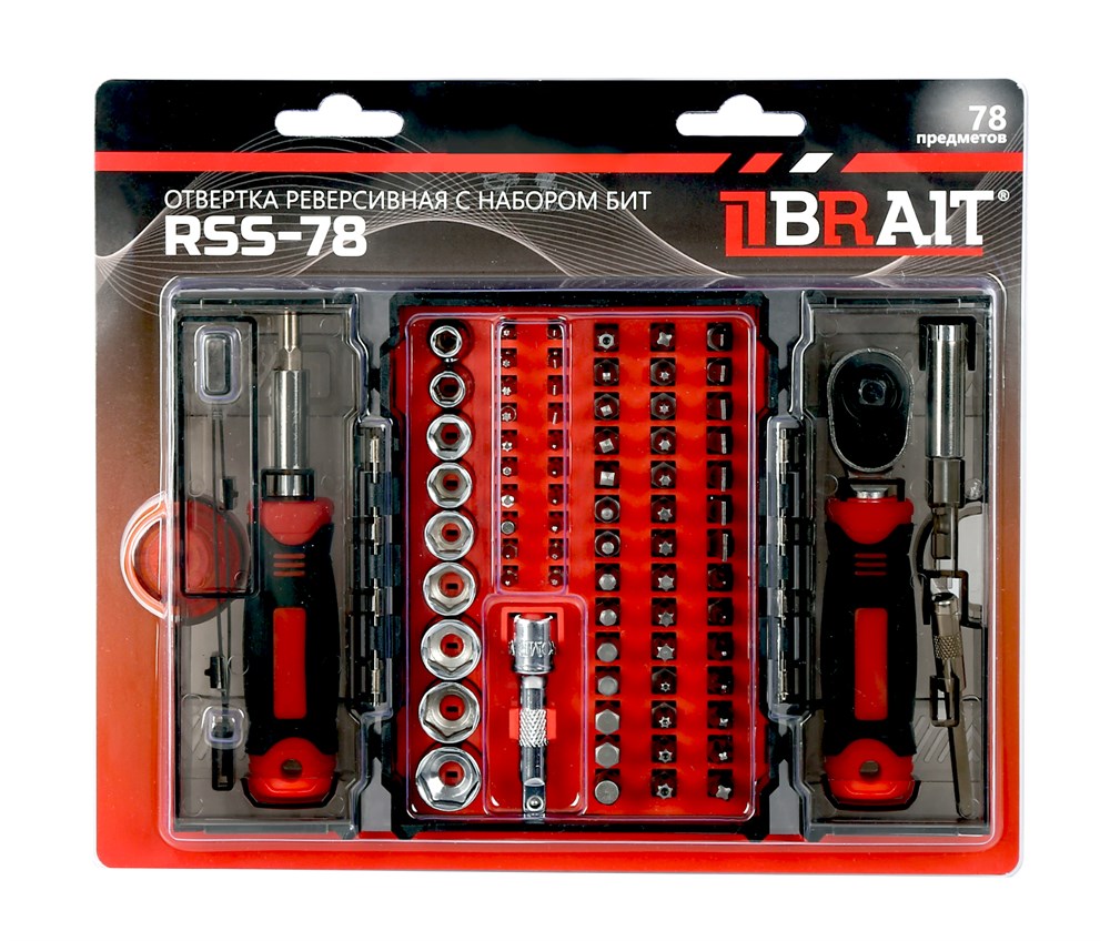 Оформление под заказ - Отвёртка реверсивная с набором бит RSS-78(матер.инстр.CR-V;общая длина 4мм;дл.стержня 5мм;мат.рукояти -PP&TPR)12шт/уп,432шт/поддон