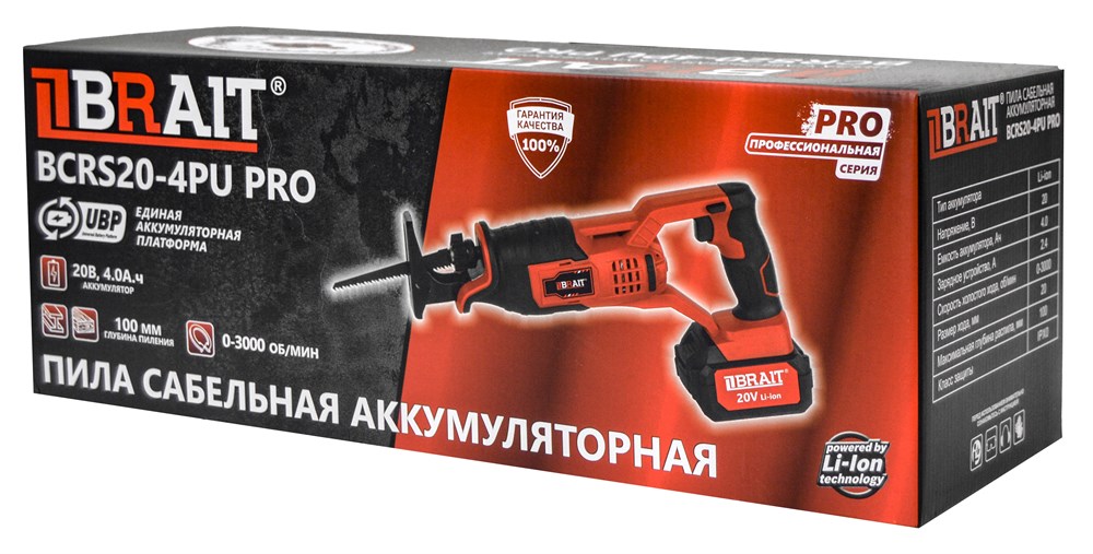 Пила сабельная аккумуляторная BCRS20-4PU PRO (20В, АКБ 4.0Ач, З/У 2.4А, 3000 об/мин, макс.глубина распила 100мм) 4шт/уп 100шт/подд