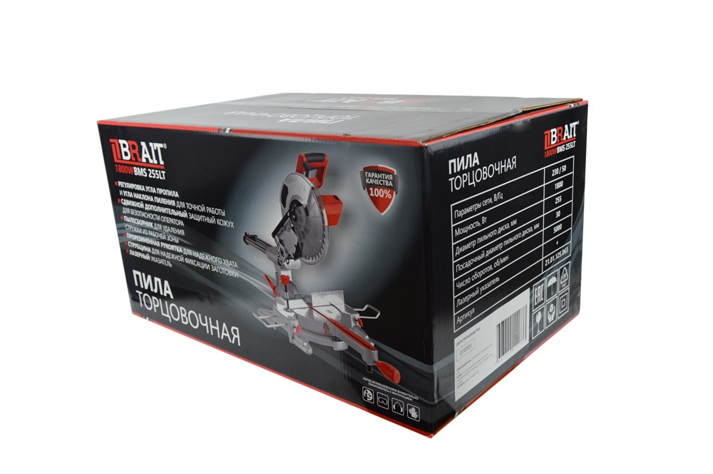 Пила торцовочная BMS 255LT (1800 Вт., диаметр пильного диска 255, 5000 об/мин.,лазерный указатель,с протягом, щетки №513) 12/15шт/поддон