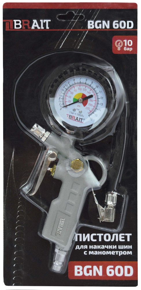 Пистолет для накачки шин BGN 60D 10бар, наконечник 25/w, с манометром 50шт/кор; 10шт/уп