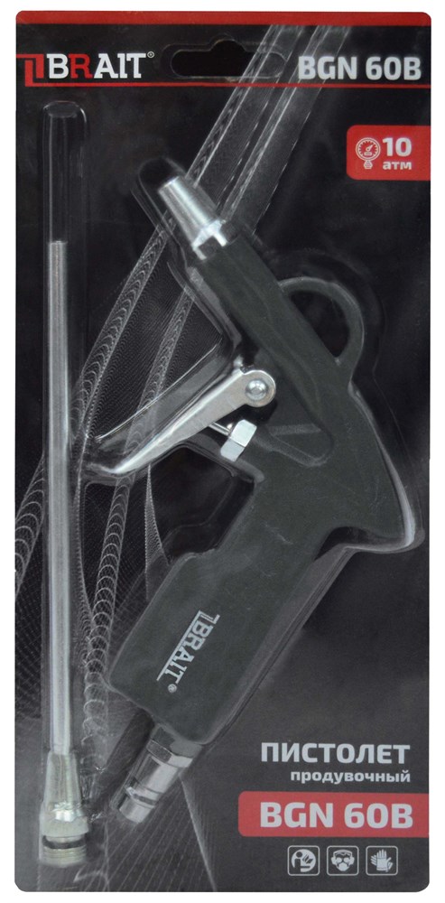 Пистолет продувочный BGN 60B давление 10атм, длина носика 200мм 100шт/кор; 10шт/уп