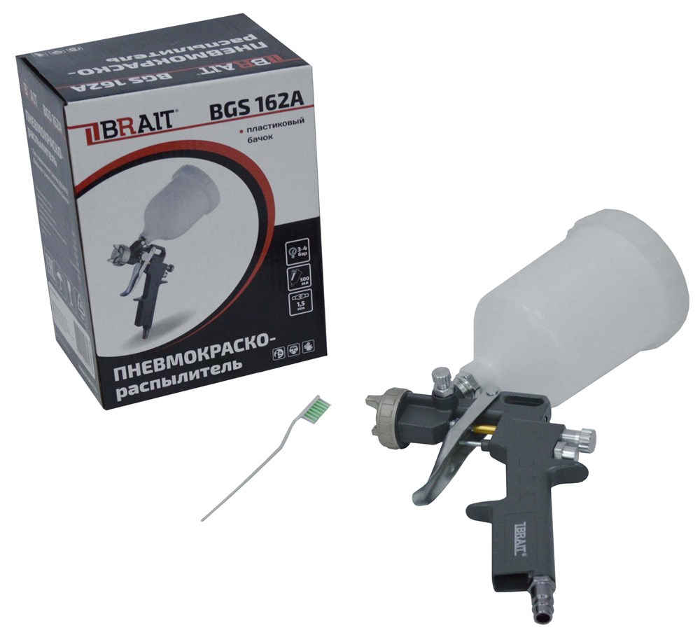 Пневмокраскораспылитель BGS 162A для воздушного компрессора верхний бак 0,5 л. пластик 20шт/кор