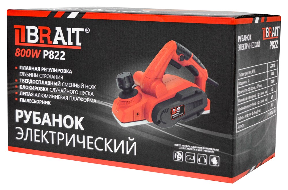 Оформление под заказ - Рубанок электрический P822 (800Вт,размер ножа 82*5,7*1,2 мм, 17000 об/мин) 4шт/кор 96шт/подд