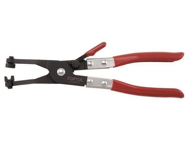 Съемник хомутов пружинных TOPTUL имеет фиксатор положения зажимов для большего удобства при работе, а 45 изгиб позволяет применять инструмент в трудно доступных местах. Рекомендуется для профессионального использования.