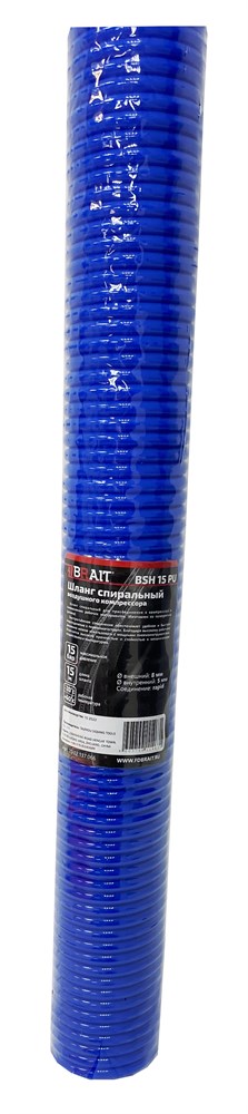 Шланг спиральный BSH 15 PU для воздушного компрессора 15м, 15 бар, полиуретан, диаметр внеш 8мм, внутр 5мм, соединение rapid, 25шт/кор