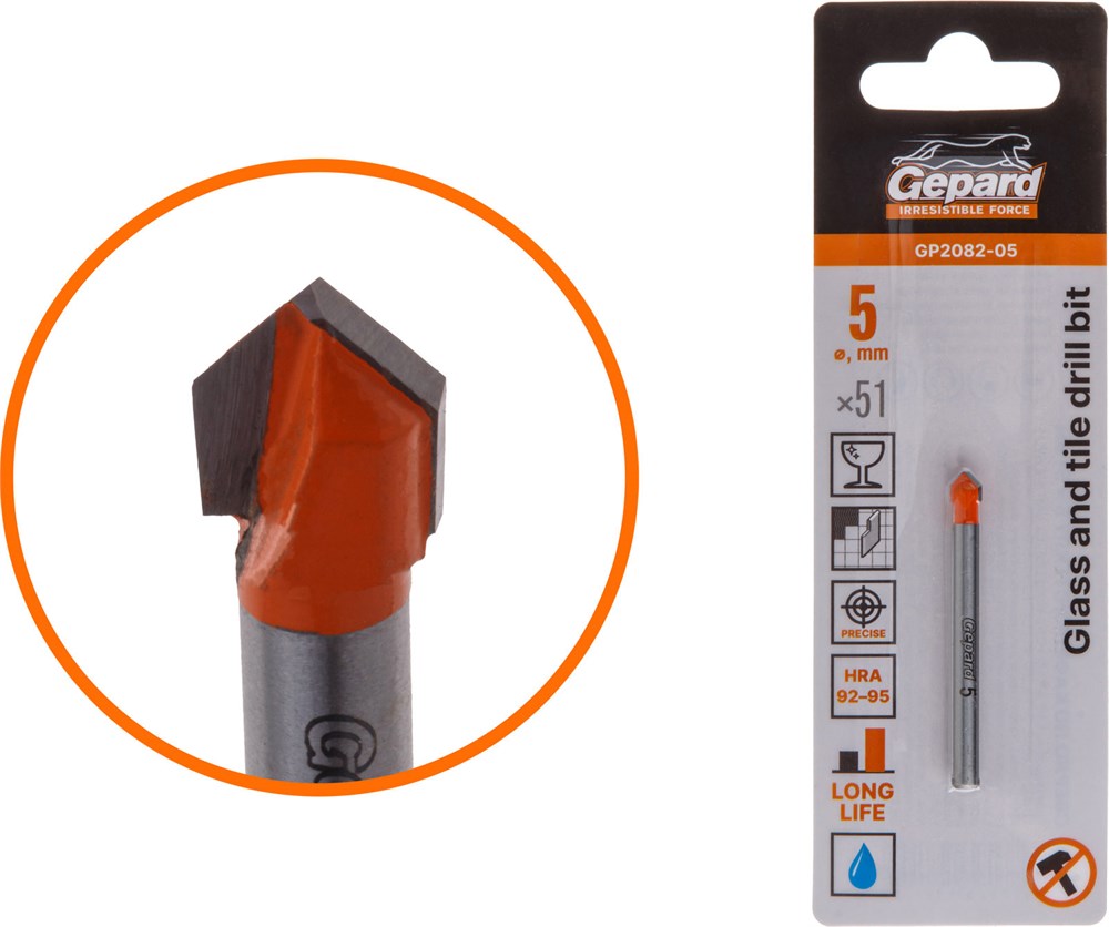 Сверло по кафелю/стеклу 5x51 мм ц/х GEPARD (GP2082-05)