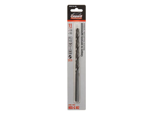 Сверло по металлу ц/х 11.0х128х195 мм удлиненное HSS-G GEPARD