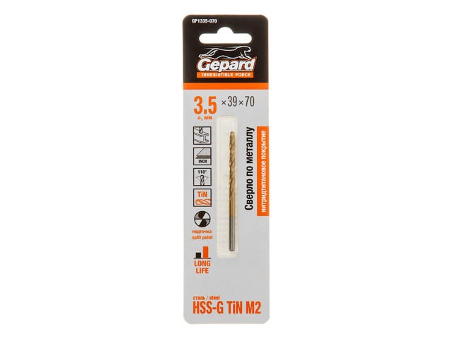 Сверло по металлу ц/х 3.5х39х70 мм HSS TIN GEPARD