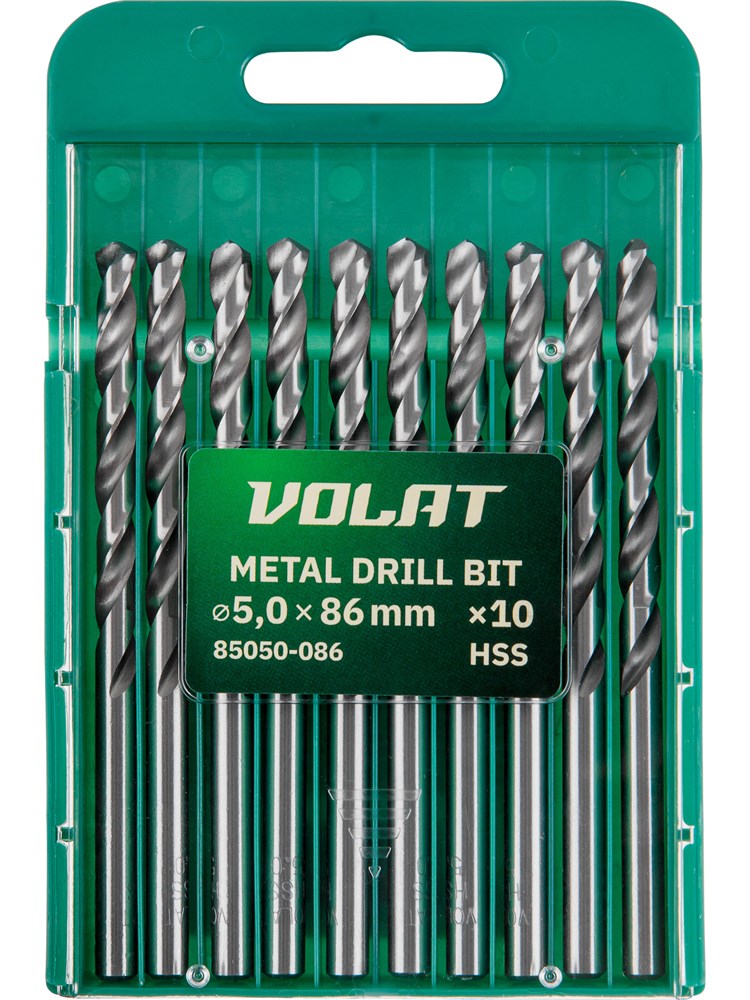 Сверло по металлу ц/х 5.0х52х86 мм HSS, комплект из 10-ти шт ВОЛАТ
