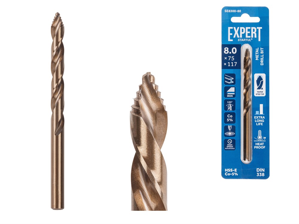 Сверло по металлу ц/х 8.0х75х117 мм HSS-Co EXPERT STARTUL