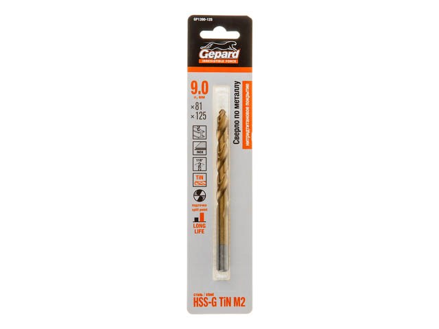 Сверло по металлу ц/х 9.0х81х125 мм HSS TIN GEPARD