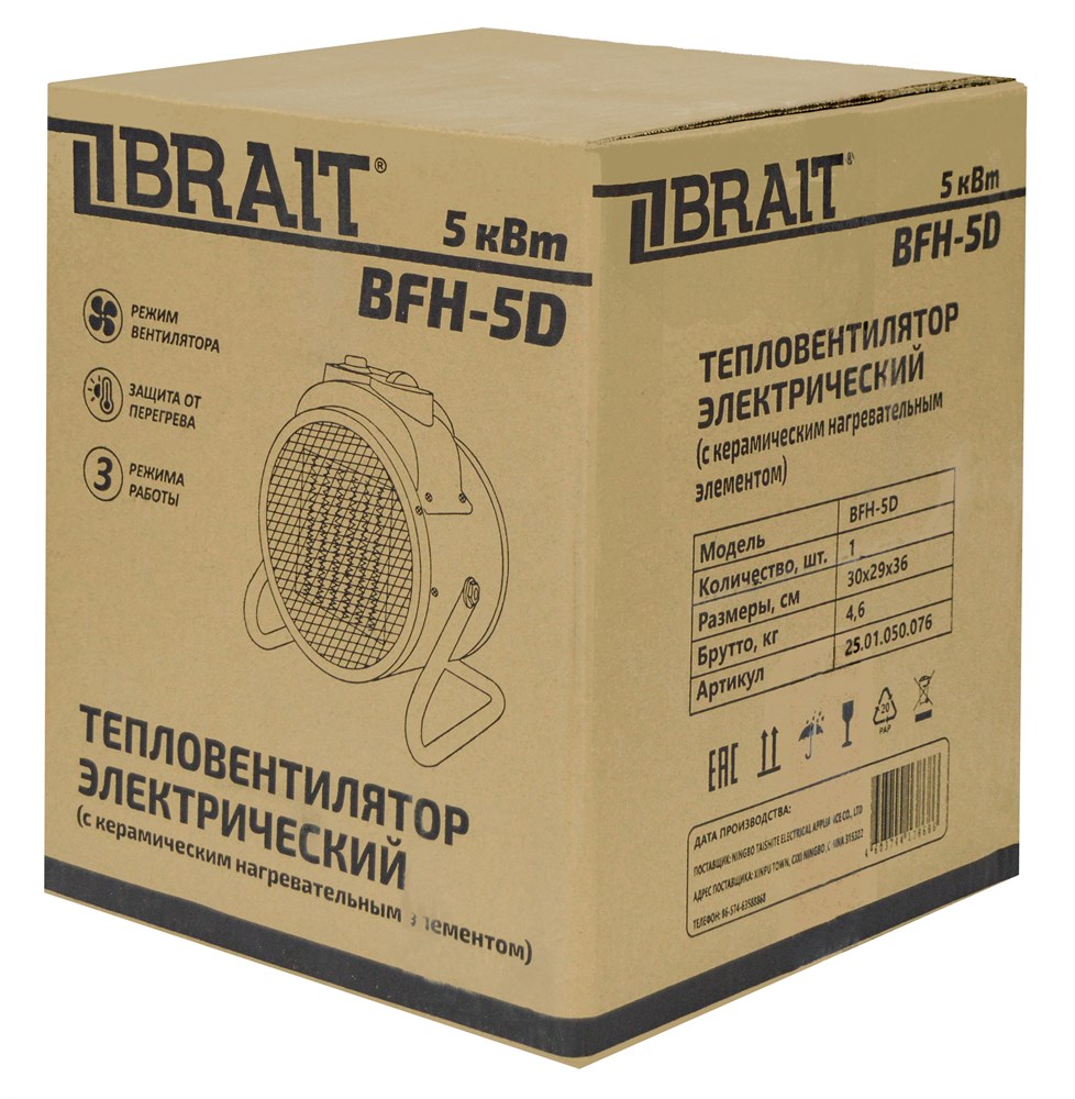 Оформление под заказ - Тепловентилятор электрический BFH-5D (5кВт,380В,500 куб.м/ч) 48шт/60шт/подд